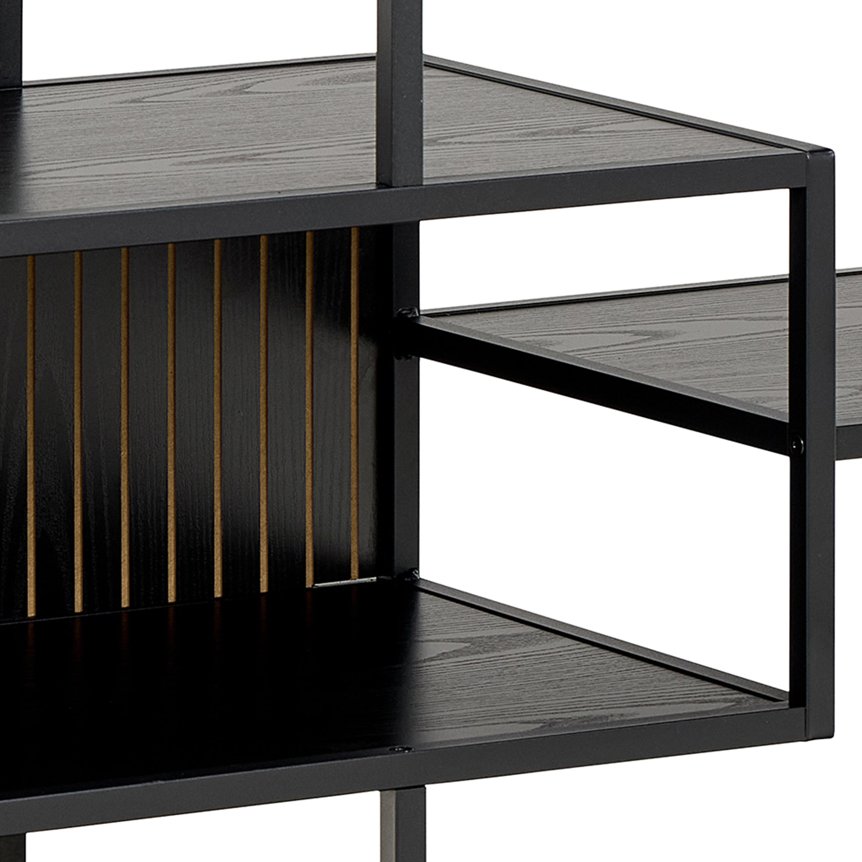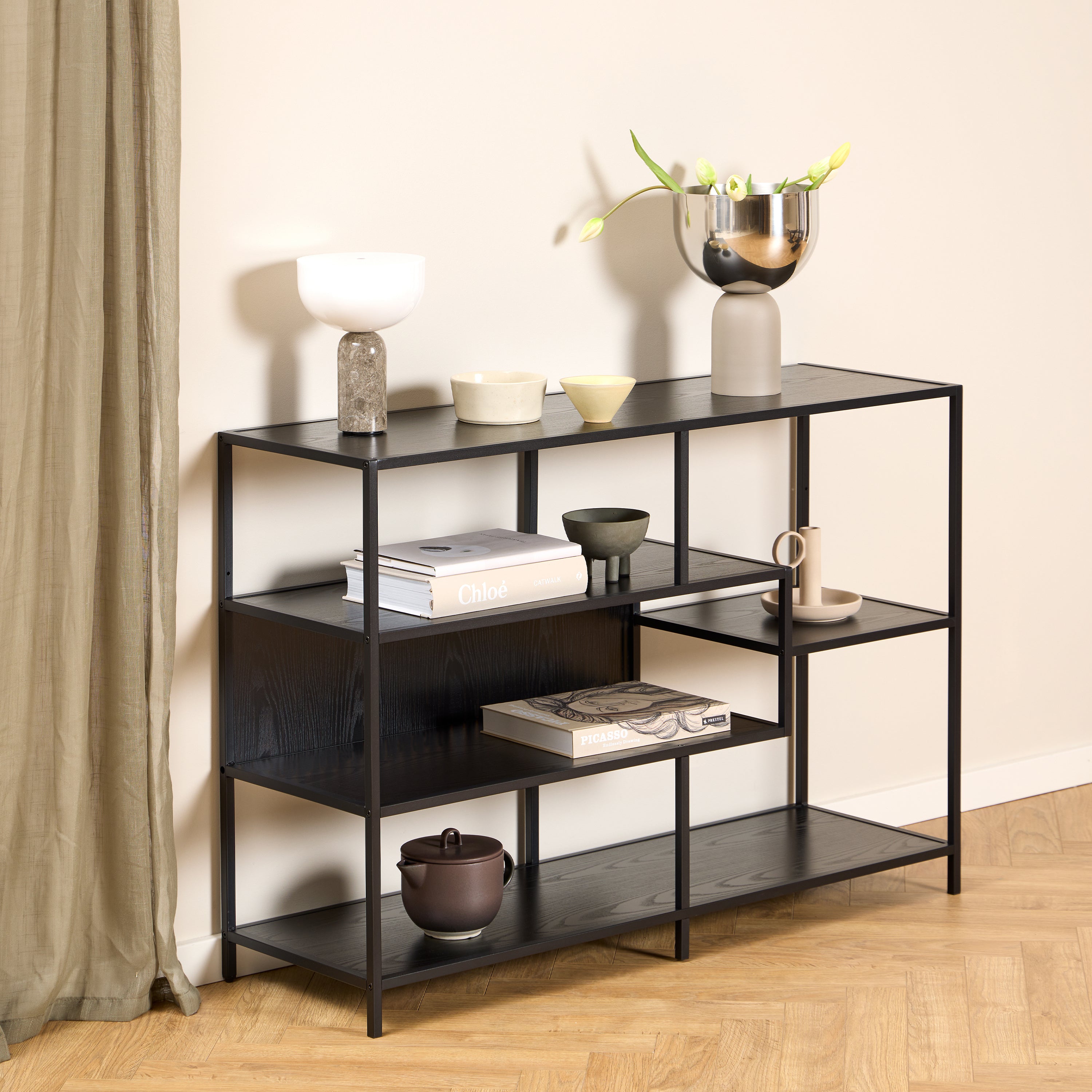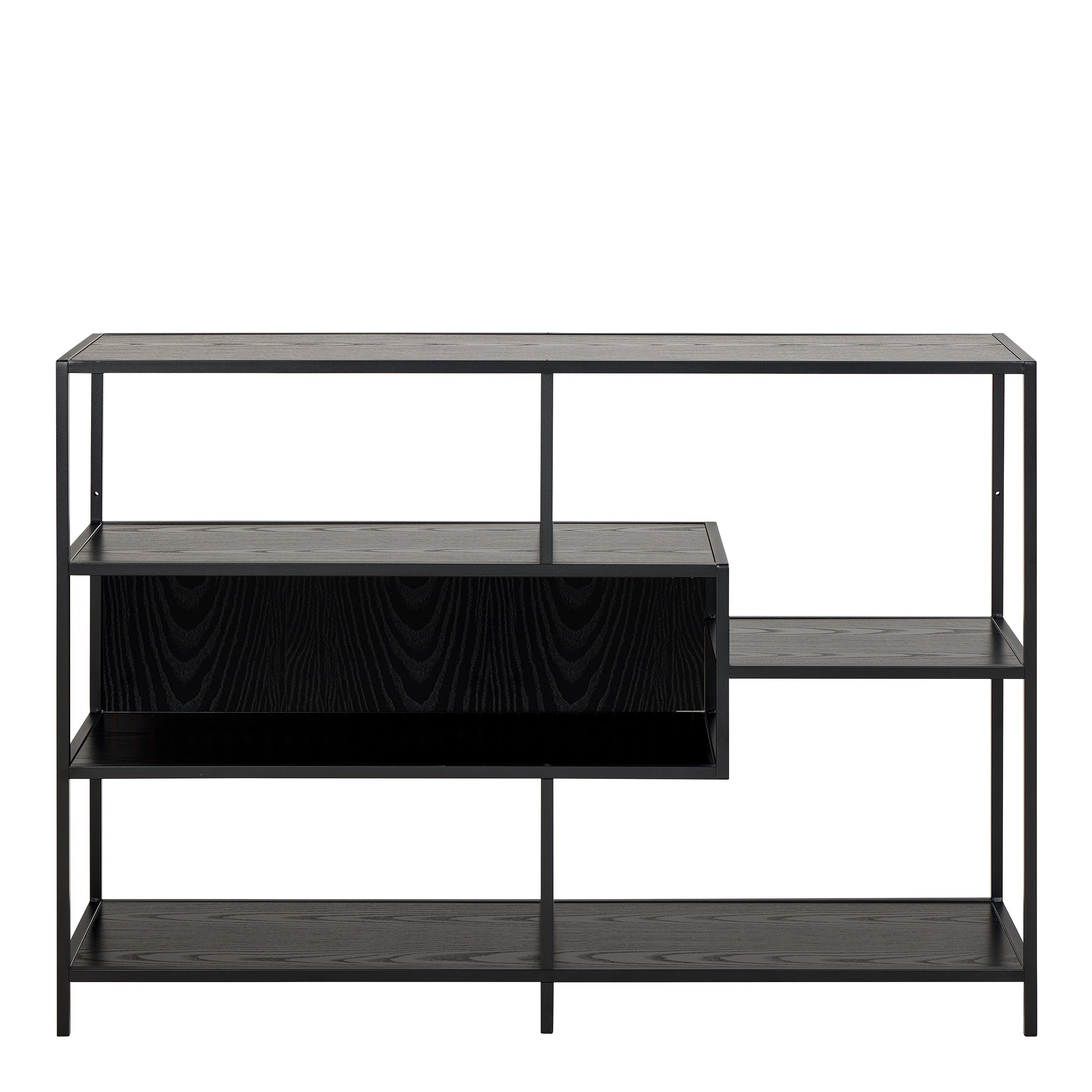 Seaford Wide Ash Black Metal Bookcase With 4 Black Ash Shelves